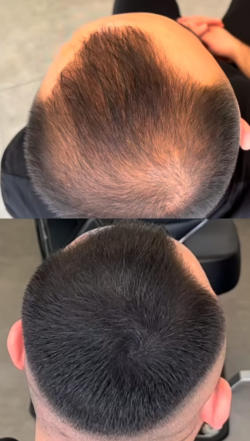 Podrás estar tranquilo, no se ve mal pintado ni se ve falso, simplemente crea un efecto visual para que la corolina no se note y las entradas sean menos visibles, así será indetectable, pero te verás más abundante capilarmente.